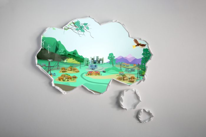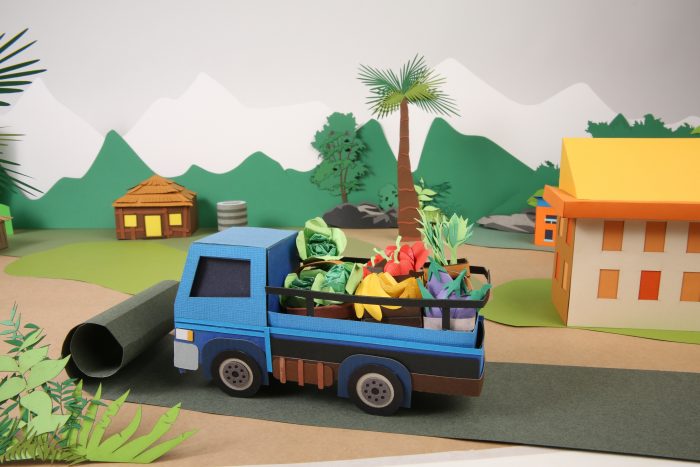 A huge amount of paper craft, set design/build and animation ensued, and the end result is a very complex piece – starting from a blank white sheet of paper to the new vision for PNG’s prosperous future.